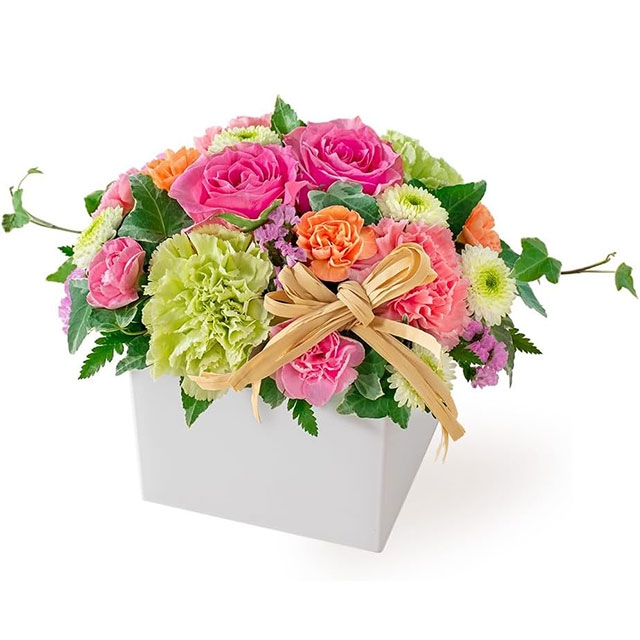 ※ご確認ください※ >>>国 内 配 達 不 能 地 域 は コ チ ラ<<< ピンク系のお花が中心のアレンジメント(器付き)です。 ※お届けの地域や急なご依頼の場合、一部お花の種類や器が変更になる場合がございます。 ※5月5日(月)~5月18日(日)お届け、母の日限定販売商品です。 >>>国 内 配 達 不 能 地 域 は コ チ ラ<<< ※ご確認ください※ *メッセージカード* ■お母さん、いつもありがとう! ■大好きなママへ 感謝の気持ちを込めて... 〇〇より ■いつも迷惑かけてごめんなさい! ■お母さんへ 私たち、孫たちを見守ってくれてありがとう。 いつも感謝しています。 ■自分の事より私たちの事に一生懸命な母さん。 たまにはゆっくり休んでくださいね。 いつもありがとうございます。 ...ほんの一例文ですのが、ご参考までに。 ※こちらの商品はご注文を頂いてから、生花店スタッフが丁寧にお作り致します。 ※お届けに伺った際に、お受取人様ご不在の場合、不在票を郵便受けに投函してお花は持ち帰ります) ▶ [ 母の日カタログ商品 ]一覧に戻る