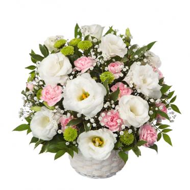 洋花のみで、白とピンクのかわいらしいアレンジメント(カゴ付)です。