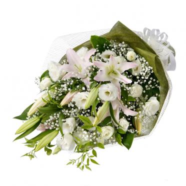 洋花のみで、ユリの花の入ったお供え用の花束です。