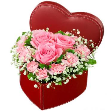 ハート型の器にお花を入れたアレンジメント(カゴ付)です。