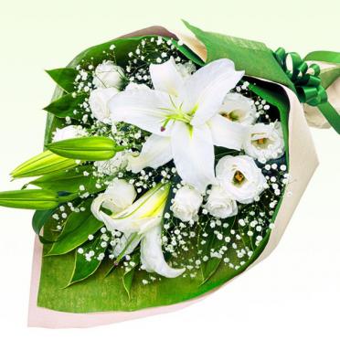白上がりのお供え用花束です。
