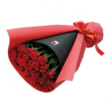 赤バラのみの花束です。