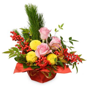 毎年人気の正月アレンジメント(カゴ付き)です。