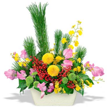 毎年人気の正月アレンジメント(カゴ付き)です。