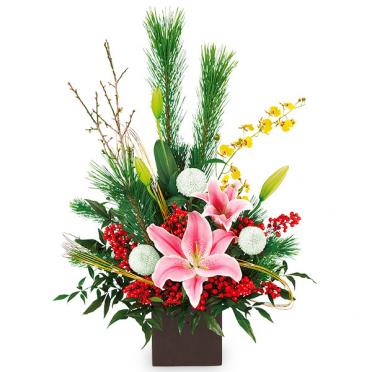 毎年人気の正月アレンジメント(カゴ付き)です。