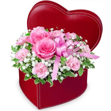 ハート型の器にお花を入れたアレンジメント(カゴ付)です。