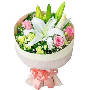 優しい気持ちが伝わるシンプルで上品なユリのブーケ。