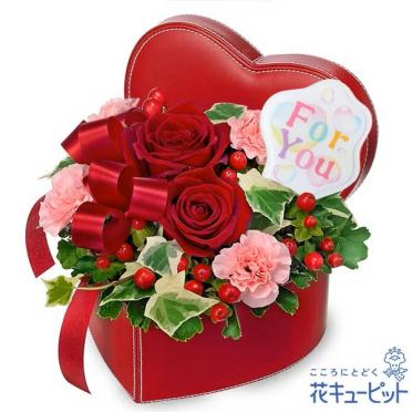 ハート型の器に入ったアレンジメント(カゴ付き)です。
