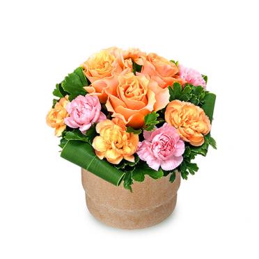 オレンジのバラをぎゅっと詰め込んだアレンジメントです。